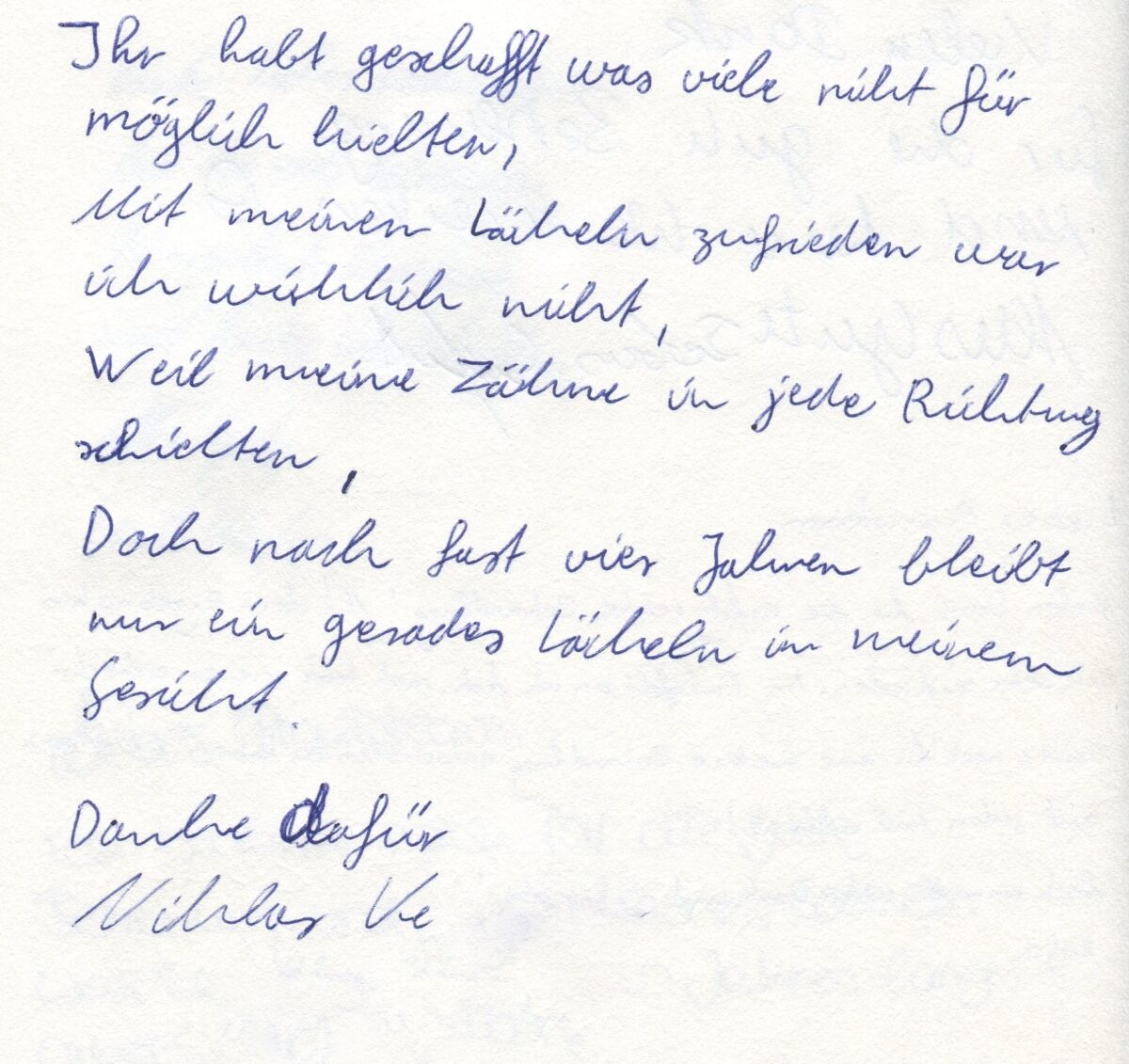 Doch nach fast vier Jahren bleibt nur ein gerades Lächeln in meinem Gesicht.